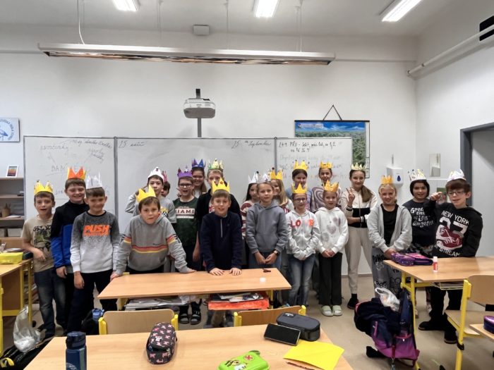 Připomínka Dne české státnosti a svatého Václava vyvrcholila v pátek 26. září 2025 v pracovních činnostech tvorbou Svatováclavské koruny. „První hodinu jsme si s dětmi povídali o babím létě, jindy také nazývaném jako svatováclavské léto. Navázali jsme tak na hodinu vlastivědy. Ke konci hodiny jsme si pustili video o korunovačních klenotech a další vyučovací hodina patřila již tvoření,“ popisuje páteční dvouhodinovku Markéta Martinů, která dětem přinesla ukázat svou vlastní vyrobenou korunu. „Nejprve jsem se trochu bála, že bude těžké korunu složit, ale nakonec se mi to povedlo,“ přiznává páťačka Natálie. Její spolužačka Olívie dodává, že se ji moc líbilo, že si korunu mohli ozdobit podle libosti.