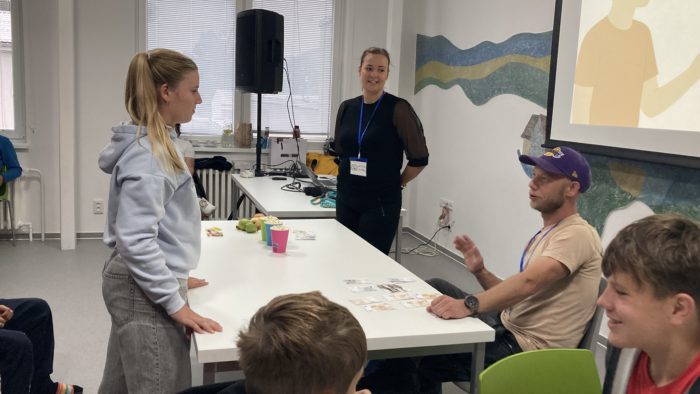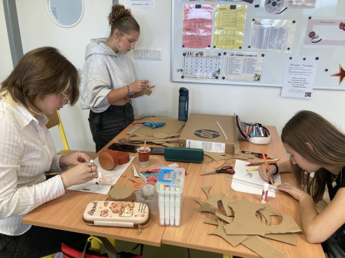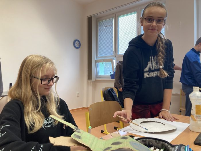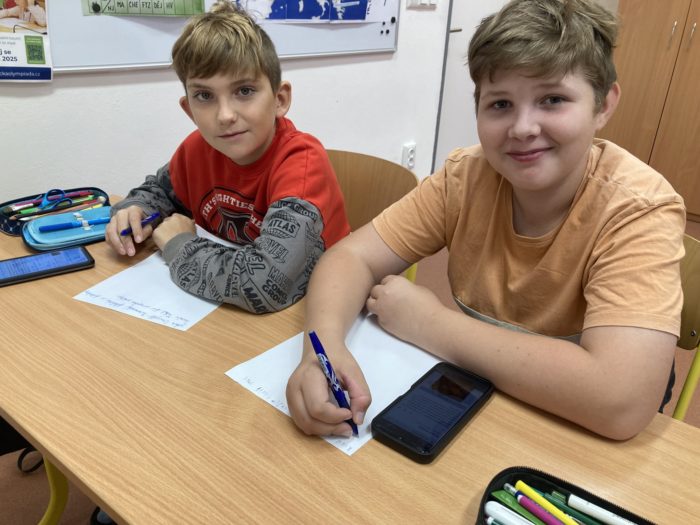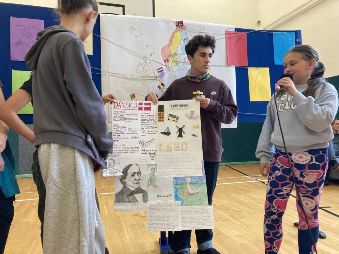 Kdo zrovna nevyráběl nebo nezjišťoval informace o zemi, měl příležitost proniknout do tajů daného jazyka a vyzkoušet si v něm jednoduchý rozhovor na běžná konverzační témata. Všechny skupiny pracovaly poctivě celé dopoledne, aby na závěr programu – v šesté vyučovací hodině – mohly ostatním představit svůj projekt.