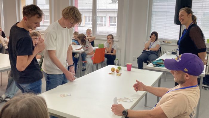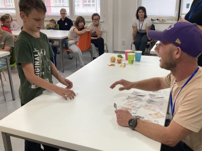 „Součástí programu byly scénky z reálného života, v nichž si žáci mohli v praxi vyzkoušet komunikaci v cizím jazyce – například v bance, obchodě nebo v kině. A když byla motivací odměna v podobě sáčku bonbonů Haribo nebo popcornu, šel veškerý ostych stranou a s dobrovolníky na rozhovory před jídelnou plnou spolužáků se doslova roztrhl pytel,“ vtipkuje Hana Poláková, která si velmi cení odvahy žáků, kteří se neostýchali komunikovat nejen v angličtině, jíž se učí všichni žáci naší školy od první do deváté třídy, ale také v němčině, která je dalším cizím jazykem vyučovaným v naší škole.
