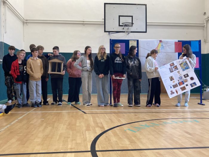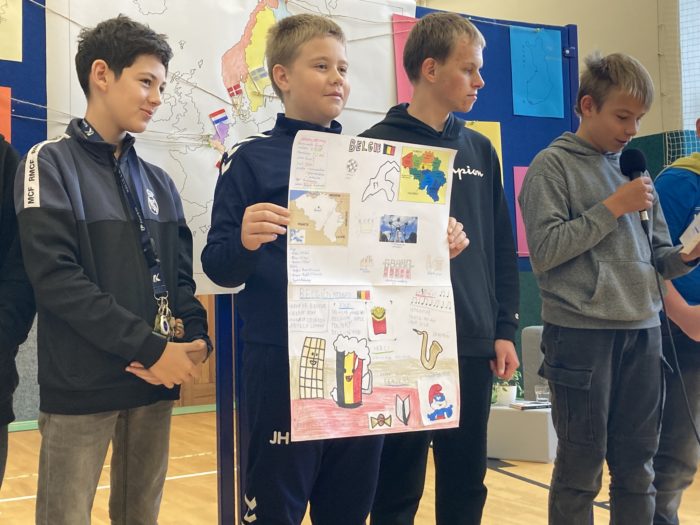 Letošní projektový den byl rozdělen na dvě části. V té první pracovali žáci v osmi náhodně vytvořených skupinách napříč druhým stupněm. Každá skupina zastupovala jednu evropskou zemi a stala se odborníkem na různé oblasti její kultury. „Kromě vyhledání geografických zajímavostí a slavných osobností měli žáci za úkol vytvořit něco, co je pro danou zemi typické. Tento úkol žáky zaujal, a my jsme tak na konci dne mohli obdivovat krásné, a někdy dokonce i funkční výrobky – například holandský mlýn, norskou loď, belgické pralinky, dánské korunovační klenoty, finskou saunu, řecký chrám a mnohé další,“ vyjmenovává organizátorka akce a vedoucí sekce cizích jazyků na naší škole Mgr. Hana Poláková. Švédská skupinka si zařídila dokonce celý pokoj ve stylu IKEA.