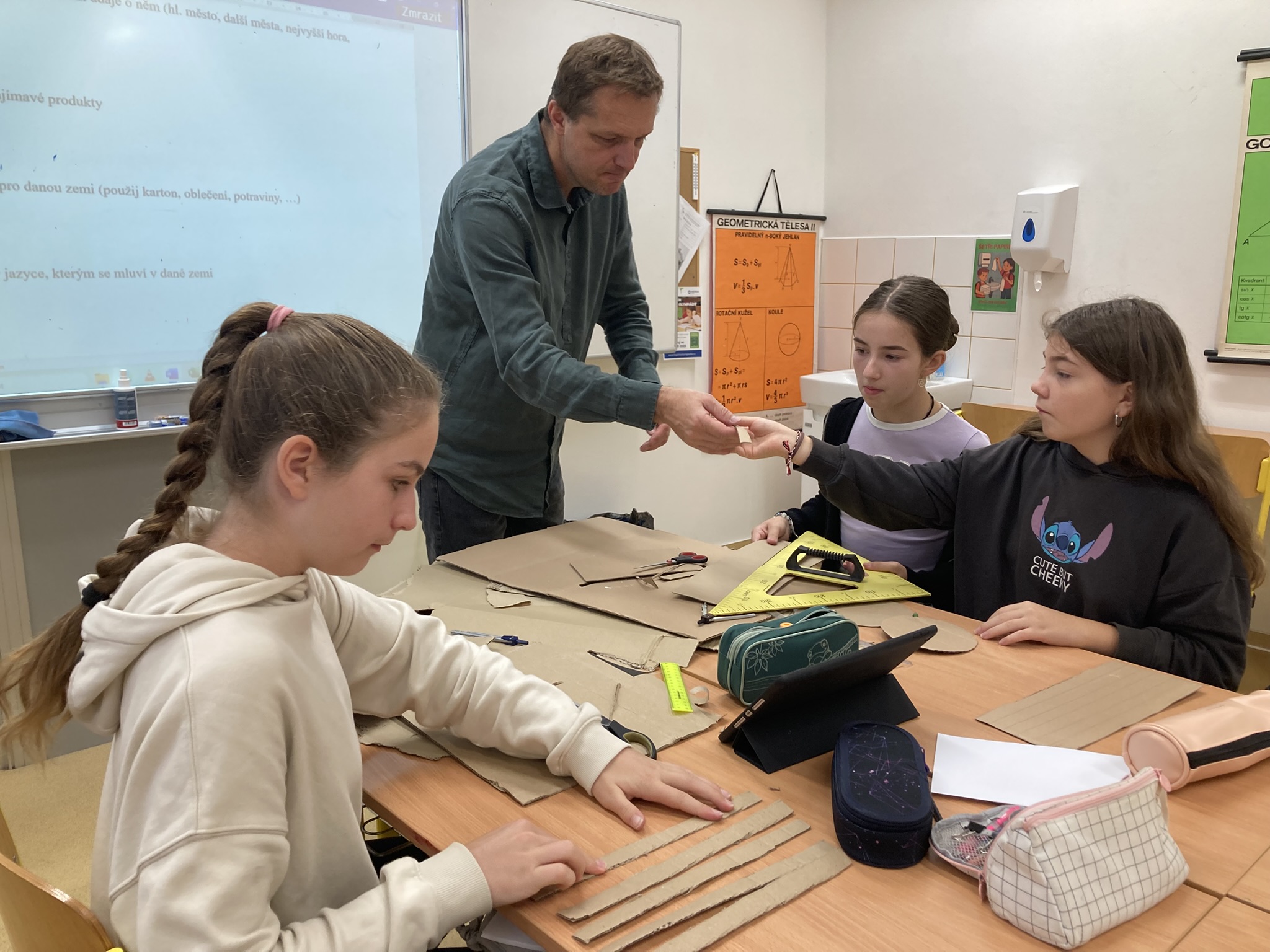 Druhá část letošního projektového dne nabízela trochu odpočinku od práce na projektech, kterou žáci v průběhu dopoledne přerušili jen jednou. Bylo to kvůli vzácné návštěvě v jídelně – rodilému Rakušanovi panu Patriku Drach, jeho manželce Pavlíně a učitelce angličtiny frýdlantského gymnázia BMA paní Monice Čevelové. Ti si pro naše žáky připravili poutavou a praktickou prezentaci plnou zajímavostí nejen o sobě, ale také o evropských jazycích.