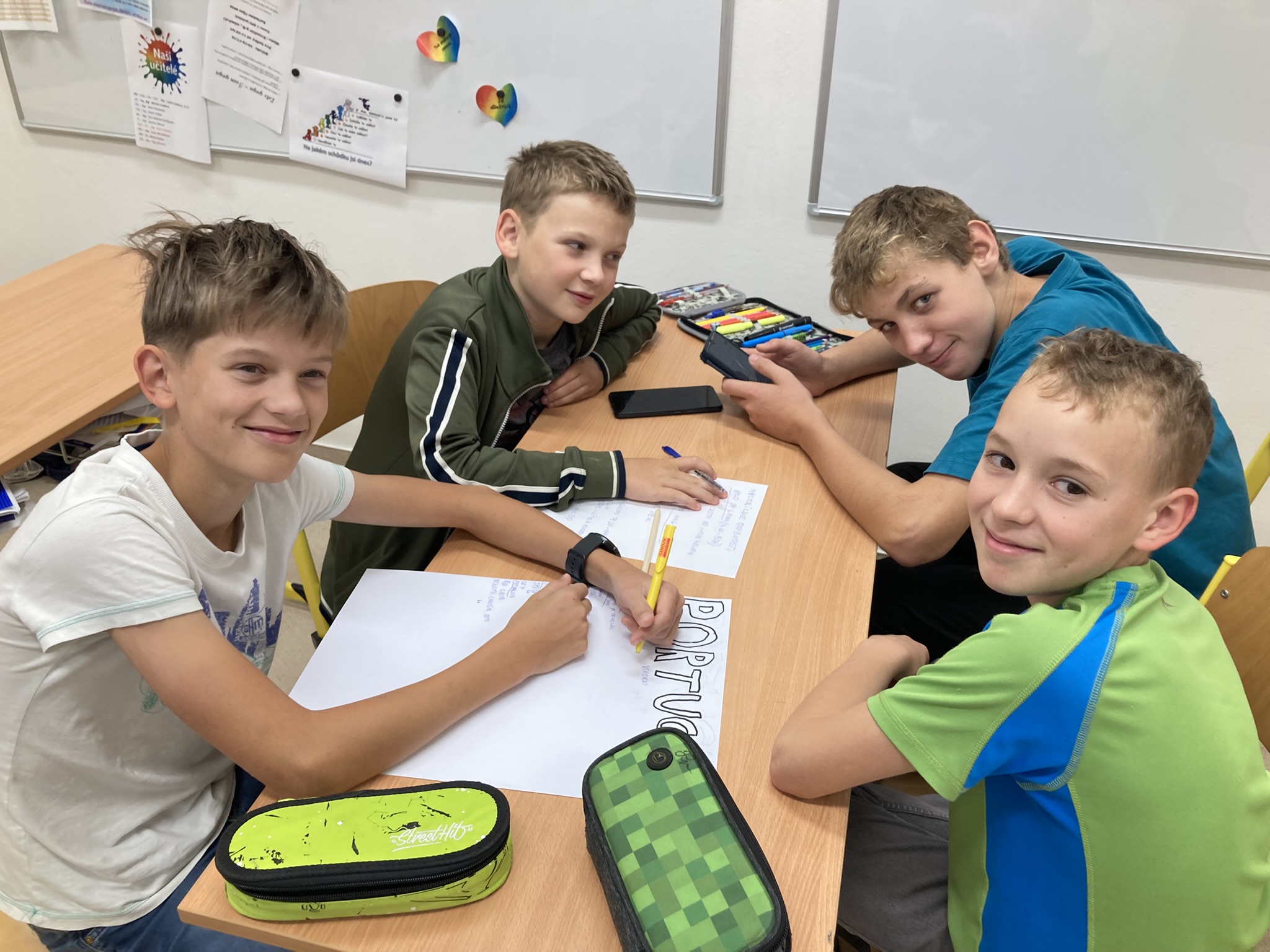 Kdo zrovna nevyráběl nebo nezjišťoval informace o zemi, měl příležitost proniknout do tajů daného jazyka a vyzkoušet si v něm jednoduchý rozhovor na běžná konverzační témata. Všechny skupiny pracovaly poctivě celé dopoledne, aby na závěr programu – v šesté vyučovací hodině – mohly ostatním představit svůj projekt.