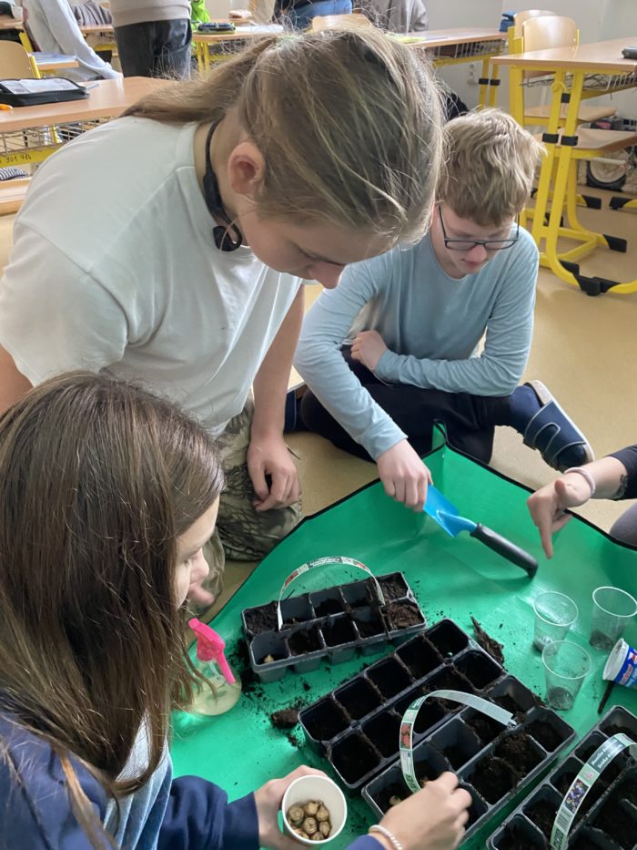 V naší škole probíhá tento projekt každoročně. Letos se ho ujali deváťáci pod vedením učitelky dějepisu Mgr. Ivany Michaličkové a Mgr. Ludmily Kalčákové, Ph.D., která učí ve škole přírodopis a pěstitelské práce. „Program jsme rozdělili na dvě části. První část se věnovala způsobu sázení cibulek krokusů, žáci hledali ideální místo k zasazení, dozvěděli se zajímavosti o této rostlině, v jakých podmínkách a při jaké teplotě roste. V druhé části řešili historické souvislosti, symboliku krokusů, zjišťovali si informace o lidech, kteří trpěli pod nacistickou ideologií, i o těch, kteří se nebáli pomáhat,“ popisuje aktivitu Ivana Michaličková.