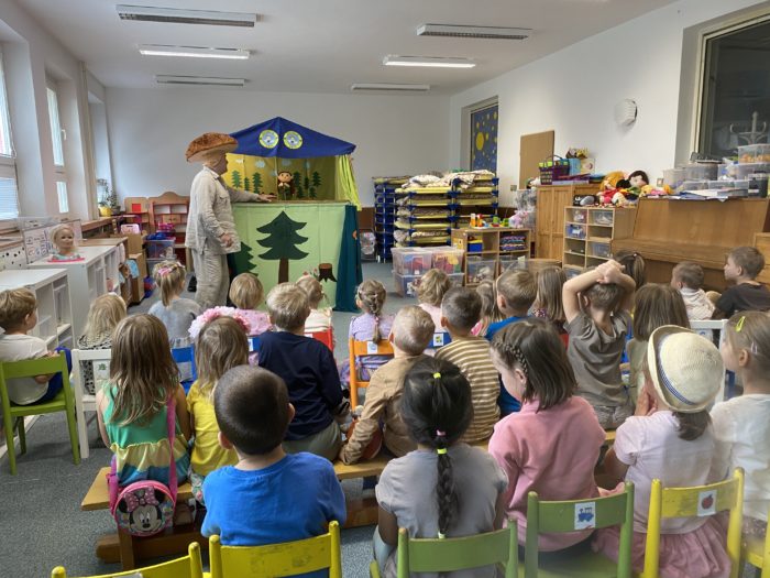 „Ten byl našim Sluníčkům nejen vypravěčem, ale také tím, kdo jim připomenul pravidla chování v lese,“ přibližuje učitelka Sluníček Lucie Weismannová, DiS. „Nechyběly samozřejmě dětské písničky, tanečky a loutky, které mají děti tolik rády,“ doplňuje její kolegyně Ivana Hosová.