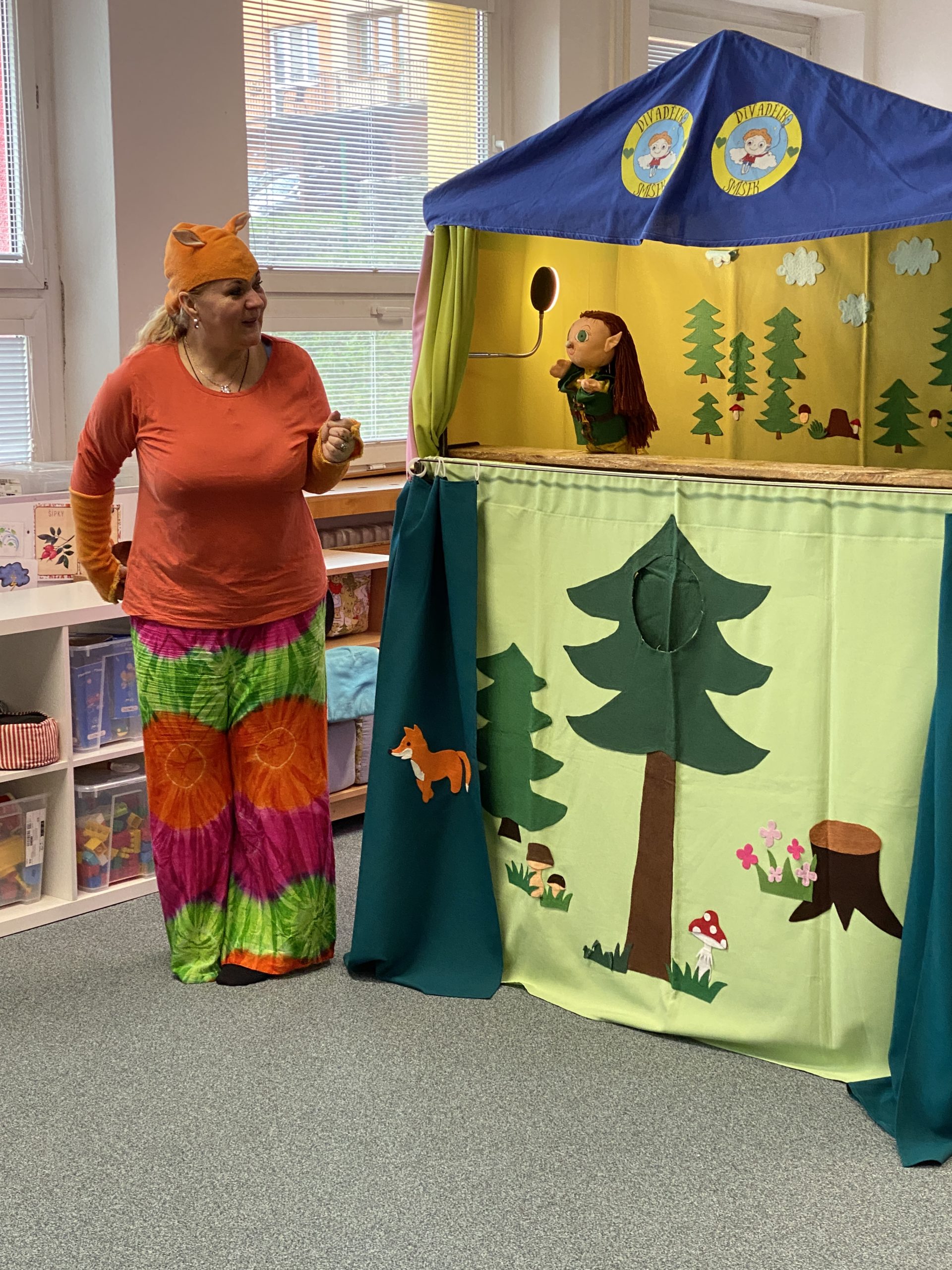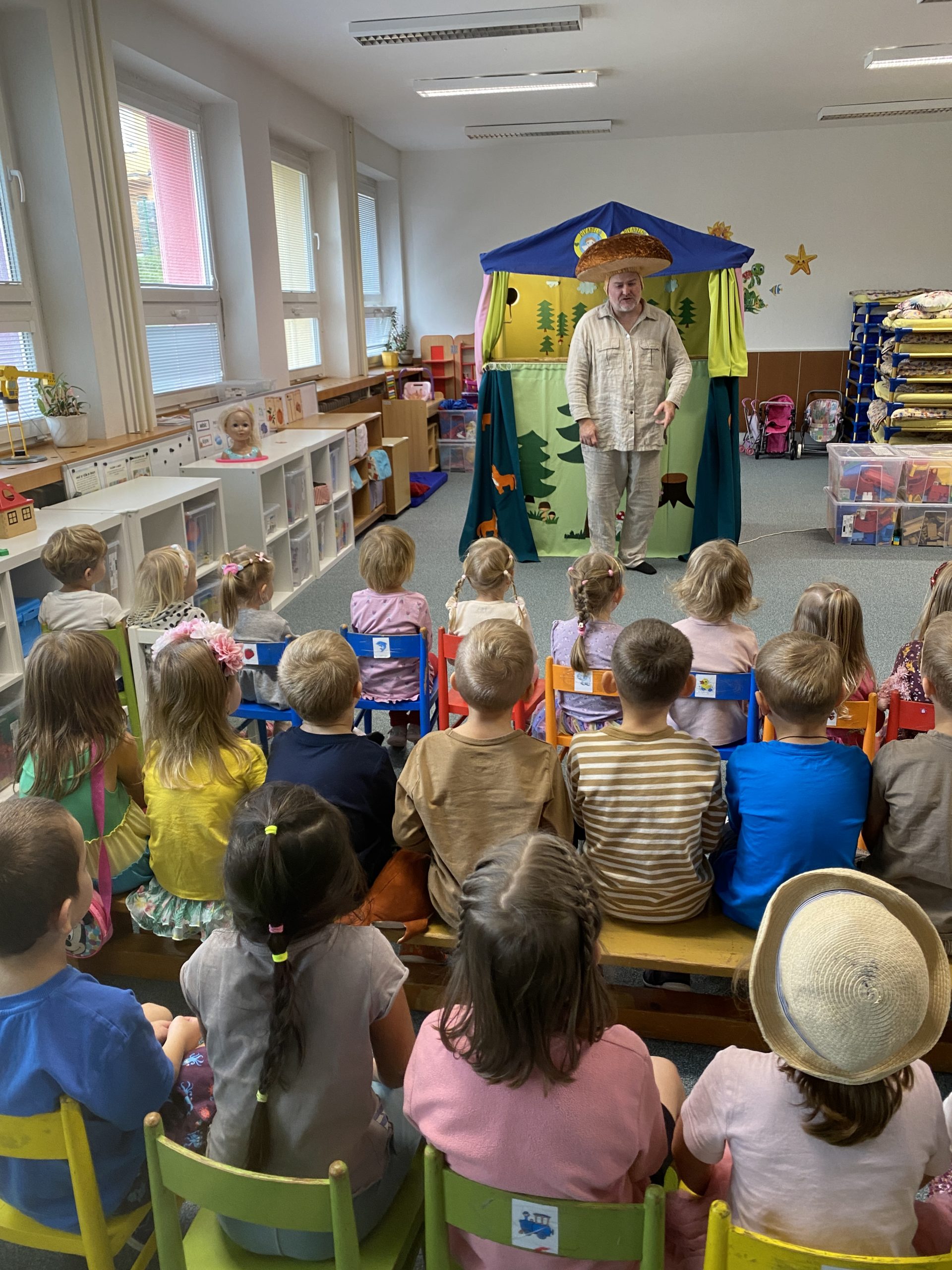 Divadélko Smíšek, které přijelo do naši mateřské školy v pátek 17. října 2025, odčarovalo všechny malé diváky rovnou do lesa. Příběhem o záludné lišce, která brala zvířátkům zásoby na zimu, provázel děti Dědeček Hříbeček.