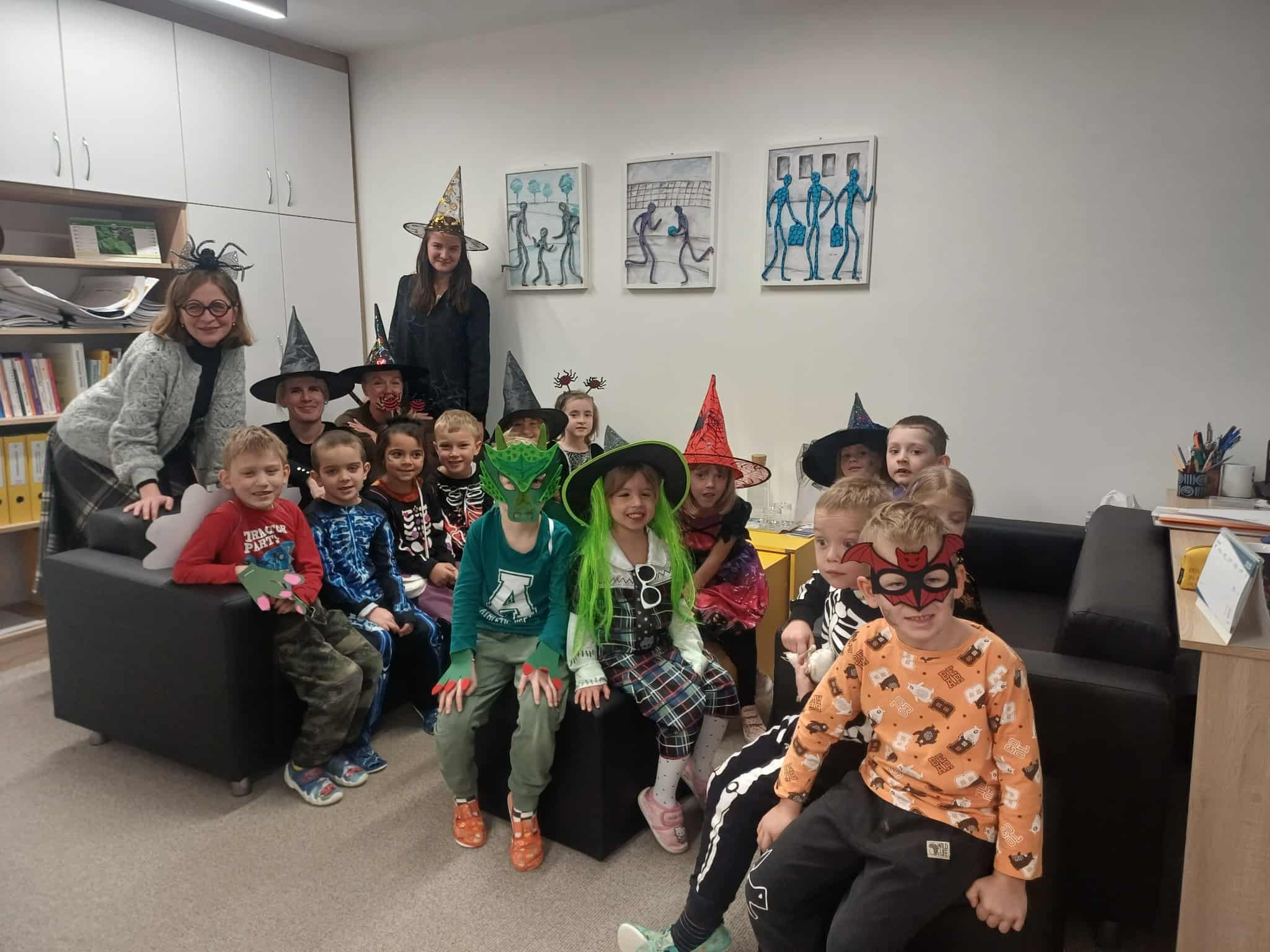 „Páteční dopoledne bylo vyvrcholením celého týdne. Děti přišly ve strašidelných i veselých maskách, které si s radostí navzájem představily. Nechyběly mezi nimi čarodějnice, kostlivci nebo třeba draci,“ popisuje asistentka pedagoga Kateřina Bučková.