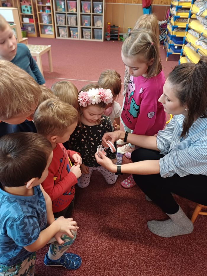„Děti se poutavou formou seznámily se správnými návyky při čištění zubů i mezizubních prostorů, povídaly si o vlivu nevhodné stravy na zubní zdraví a o důležitosti pravidelných preventivních prohlídek u zubaře,“ přibližuje obsah besedy učitelka Sluníček Lucie Weissmannová, DiS.