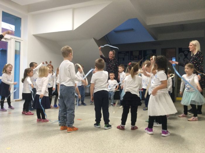 Hosty přivítala ředitelka školy Mgr. Olga Síbrová, zástupkyně ředitelky Mgr. Markéta Martinů a následně také učitelka Sluníček Ivana Hosová. Po úvodním přivítání děti nejprve tancovaly, pak se ztlumilo osvětlení a sál rozzářily lucerničky, které dodaly vystoupení našich nejmenších kouzelnou a slavnostní náladu.