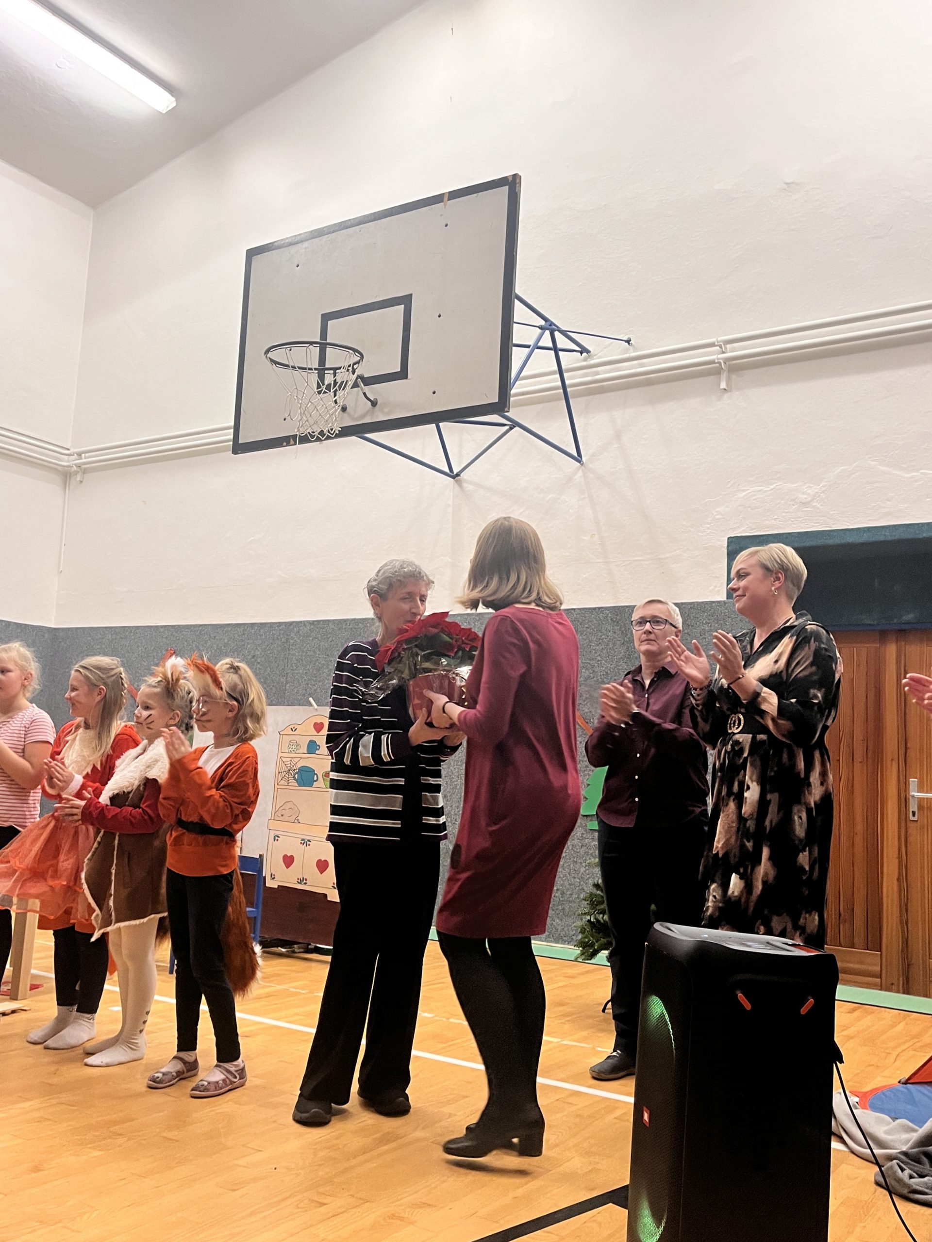 Závěr roku 2025 byl ve škole zároveň také obdobím loučení – a to nejenom se „starým“ rokem. Po více než dvaceti letech práce v lichnovské škole odešla do zaslouženého důchodu naše kolegyně Ing. Alice Červenková. Paní vychovatelka se s námi symbolicky rozloučila secvičením hudební pohádky O Budulínkovi s družinkovými dětmi. Pohádka měla svou premiéru v listopadu na velkém jevišti kulturního domu v Kopřivnici na společenské akci Pohádkový Motýlek, kde jsme vystoupením podpořili handicapované děti. Podruhé sehrály děti představení ve frenštátském Domově pro seniory Hortenzie.