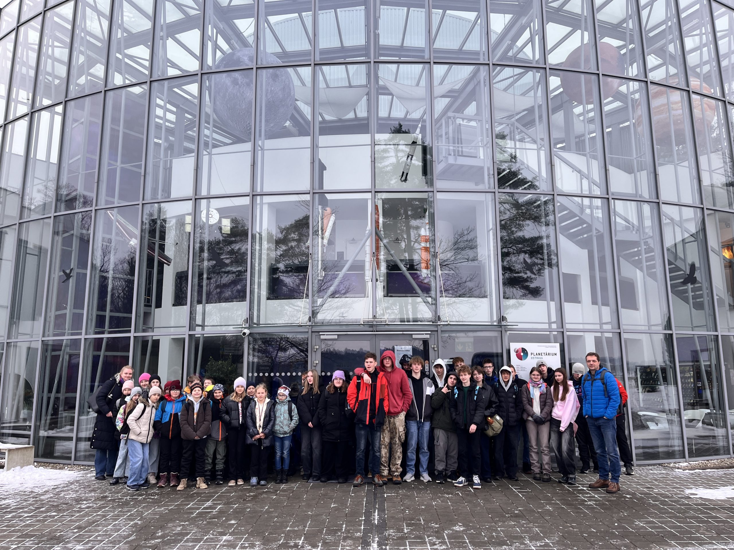 Na společnou přírodovědnou exkurzi do Planetária Ostrava se ve čtvrtek 8. ledna 2026 vydali žáci páté třídy společně s žáky obou devátých tříd. V doprovodu svých učitelů a asistentek pedagoga vyrazili na cestu za poznáním s jasným cílem – dozvědět se spoustu zajímavých informací o vesmíru.