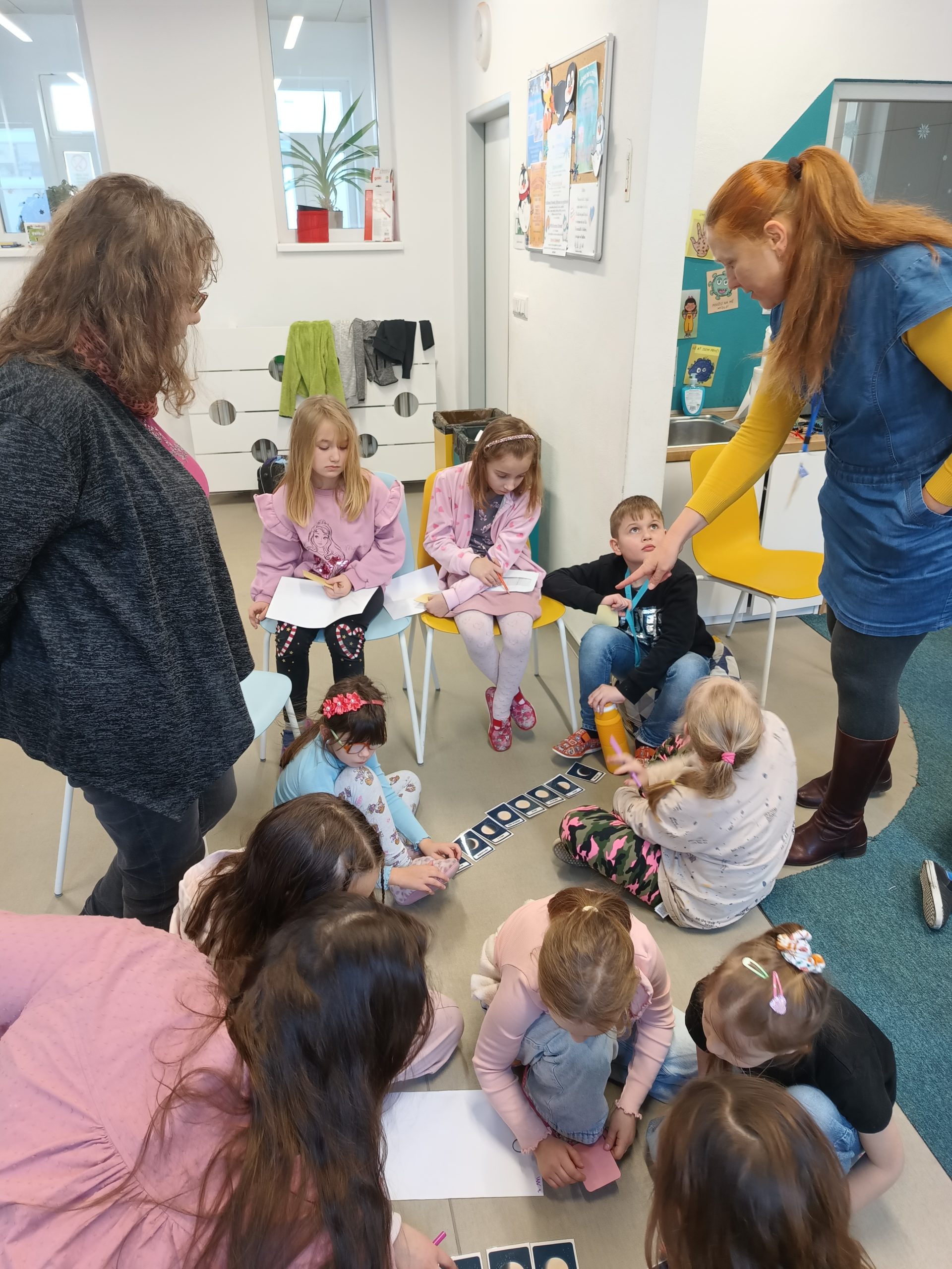 „Celé setkání probíhalo formou hry. Děti plnily různé úkoly, odpovídaly na otázky, poznávaly planety podle obrázků a společně si na závěr vymalovaly vesmírnou omalovánku,“ přibližuje náplň setkání vychovatelka Myšáků Nikol Konečná. „Nechyběly ani hádanky a soutěže, při kterých si děti ověřily, co všechno si zapamatovaly,“ doplňuje svou kolegyni vychovatelka Smajlíků Bc. Nikol Švidrnochová.