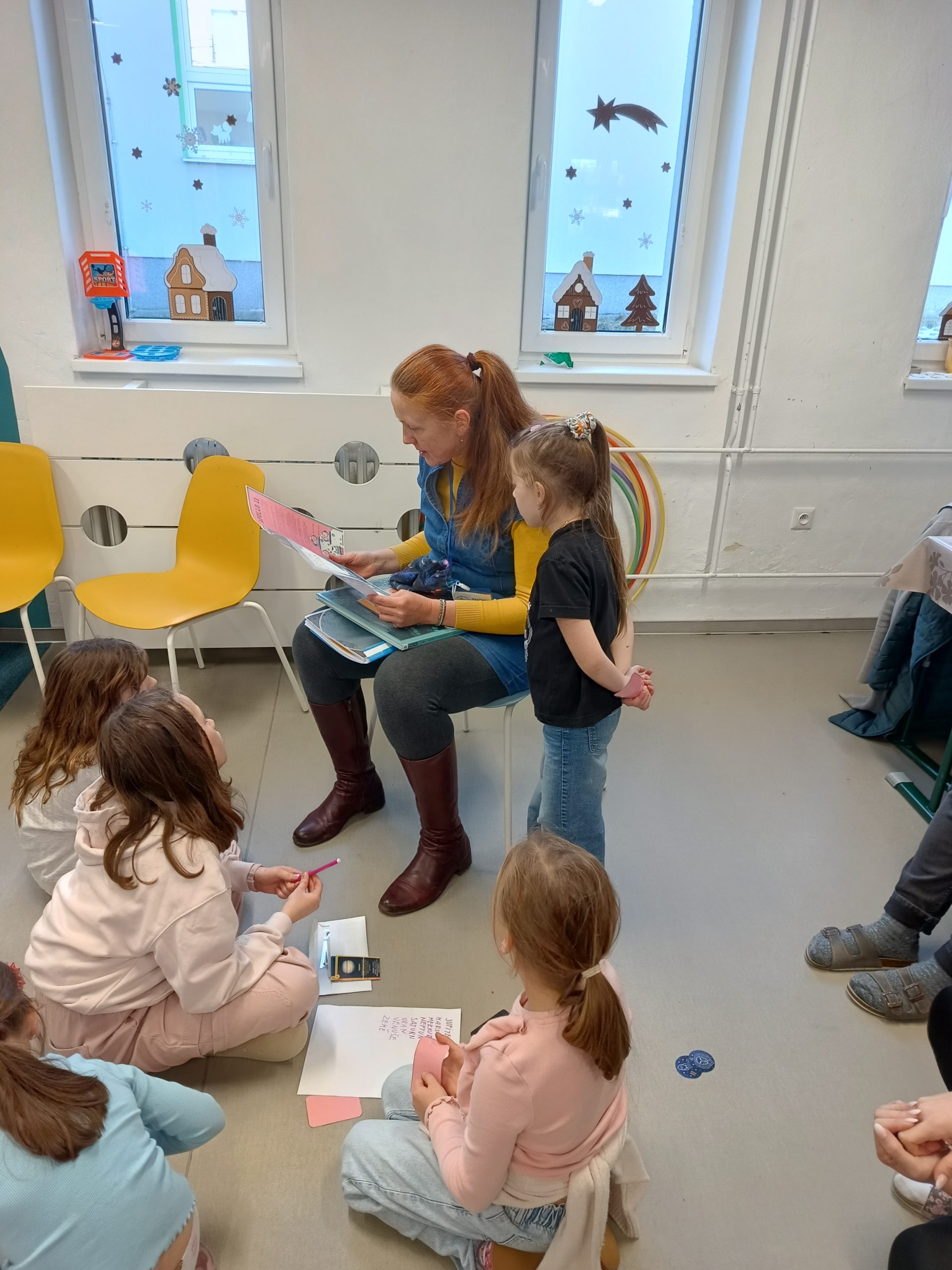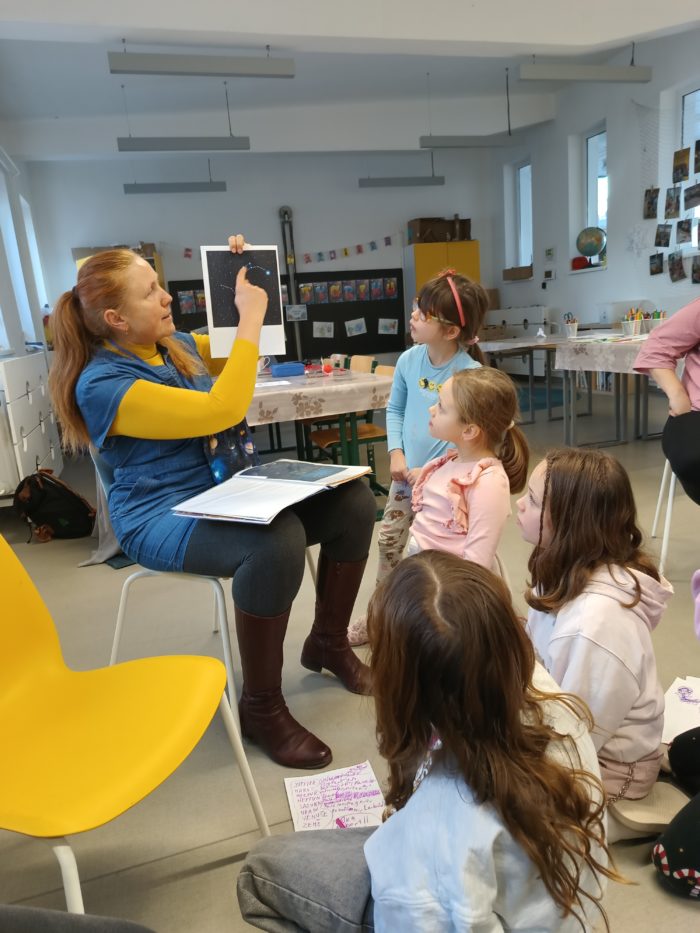 Paní knihovnice dětem vyprávěla o tom, co všechno se ve Vesmíru nachází. Děti se tak například dozvěděly, jaké máme planety, jak jdou po sobě, jaké máme fáze měsíce, jména některých hvězd a souhvězdí a další zajímavosti.