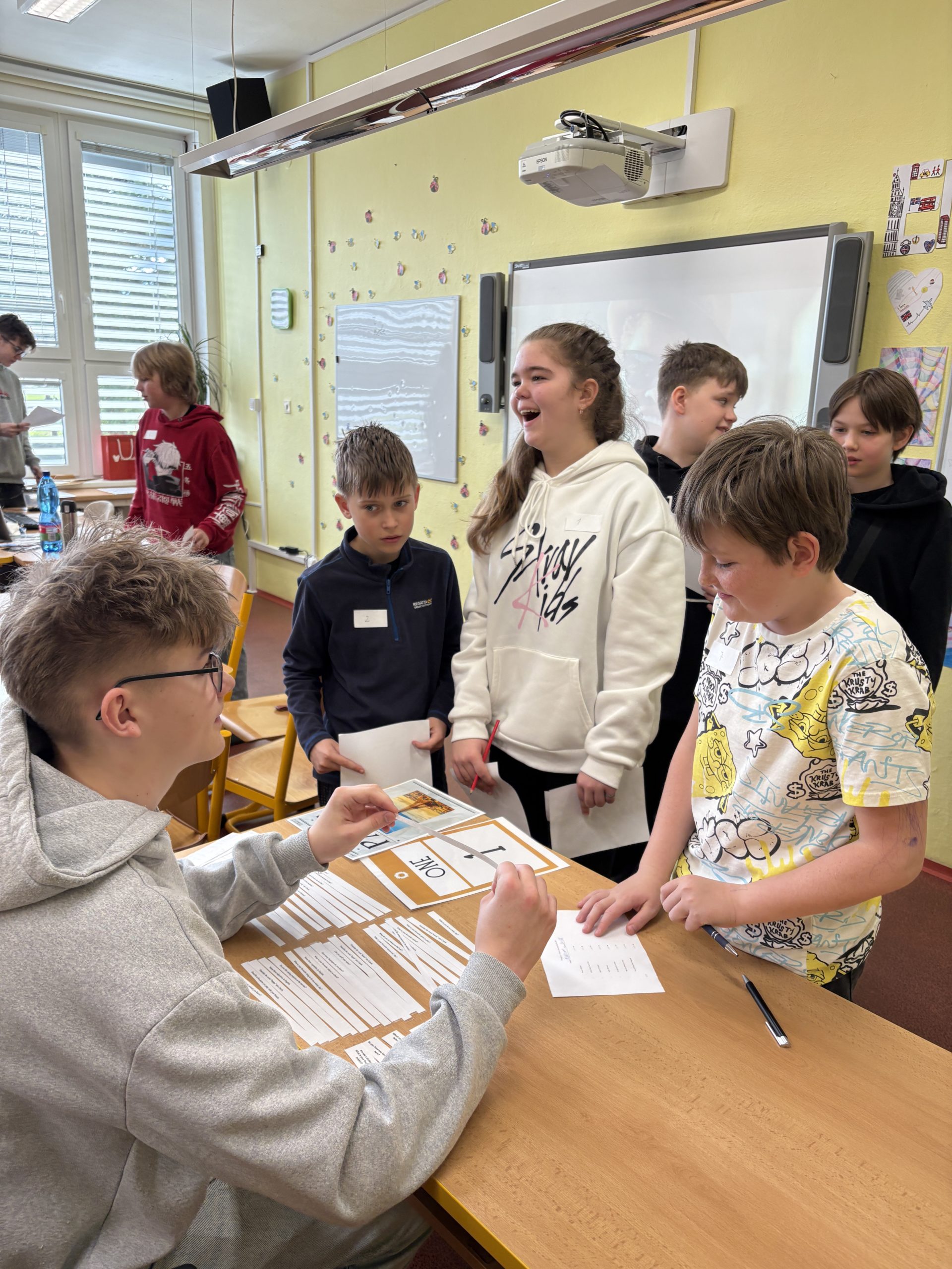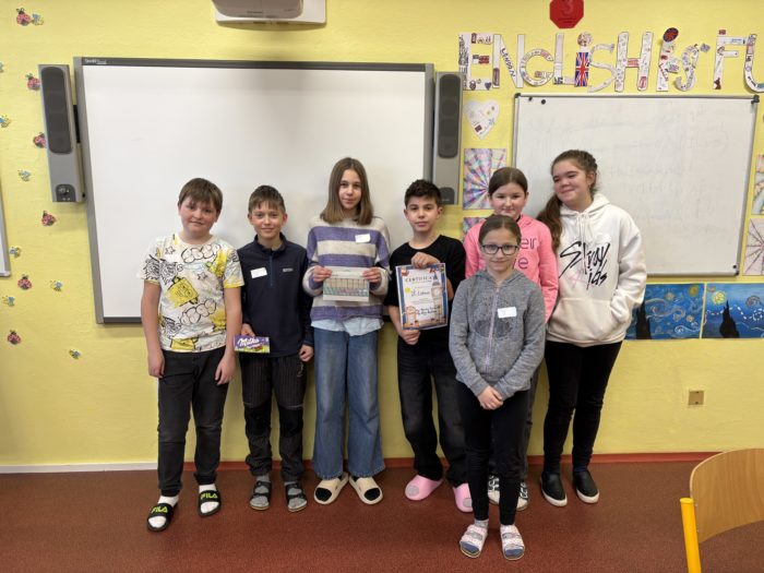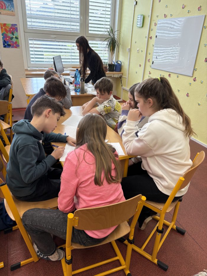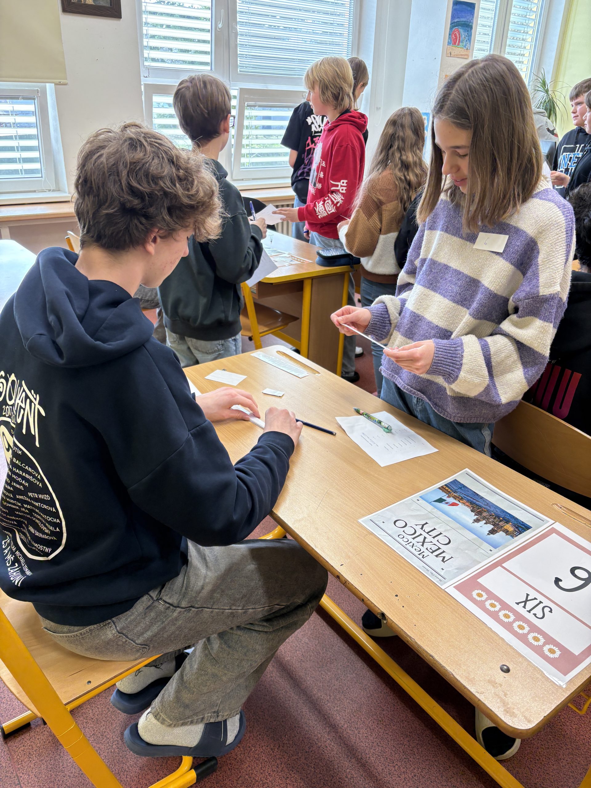 Nakonec jsme skončili na čtvrtém místě. Náš první úkol byl, že jsme dostali papír s čísly, chodili jsme po chodbě a hledali odpovídající lístečky. Na nich byly různé otázky, na ty jsme museli odpovědět a napsat písmeno přiřazené správné odpovědi. Jako další jsme pracovali na tabletech. Třetím úkolem bylo poslouchat písničku a odpovídat na otázky, které byly napsané na papíře. Naším posledním úkolem byla stanoviště, kde nás kontrolovali žáci z deváté třídy. Některé otázky byly lehké, některé naopak těžké, ale bylo to super a moc jsme si to užili.