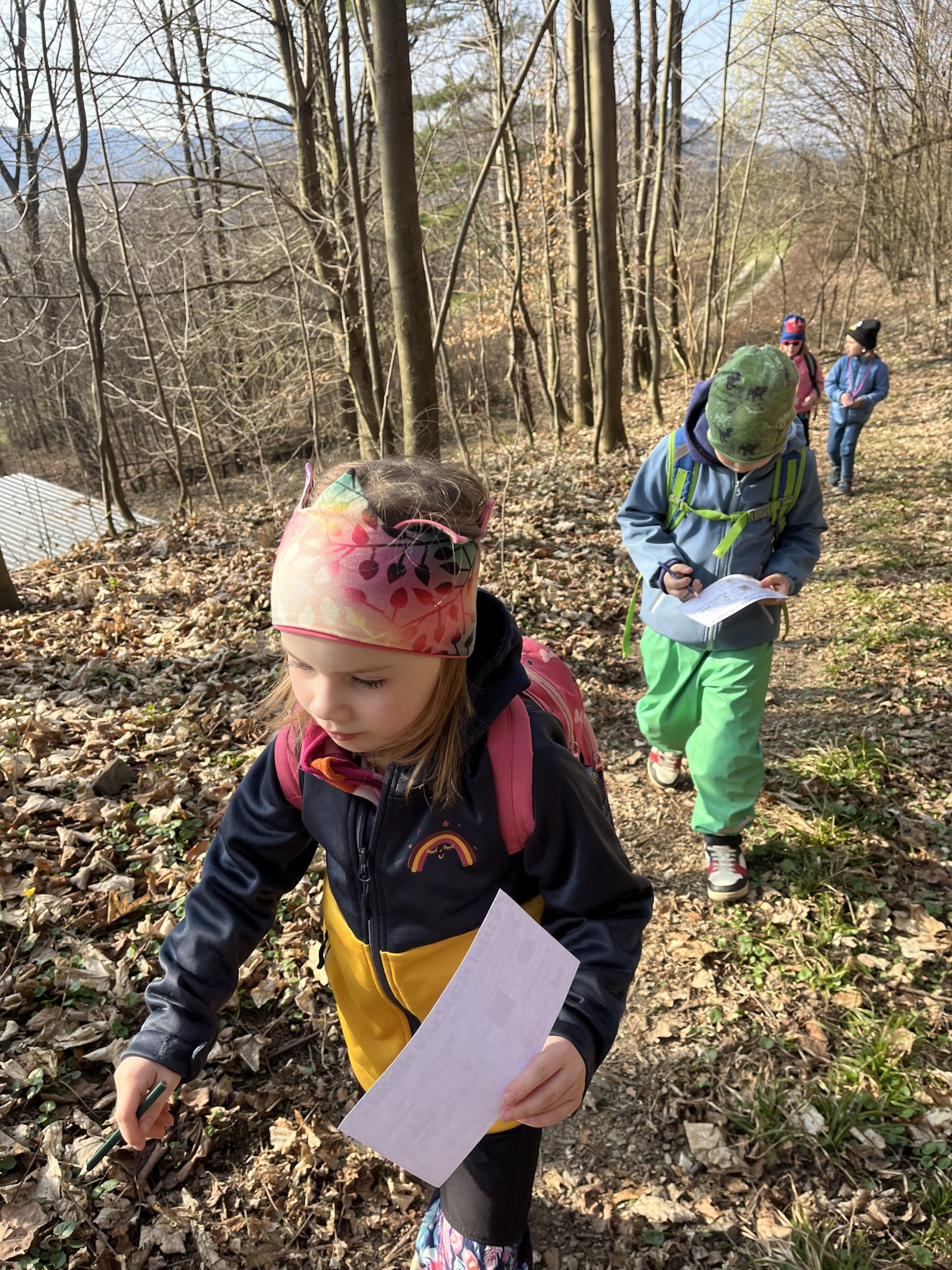 „Pro děti jsme měly připravenou zábavnou aktivitu Lesní pátračka. Společně jsme tak hledali první známky přicházejícího jara. Děti pozorovaly pupeny na stromech a objevovaly první jarní květiny, jako jsou devětsil lékařský, prvosenka jarní, lýkovec jedovatý nebo fialky vonné. Povídali jsme si o tom, jak se příroda po zimě postupně probouzí. Děti se tak učily pozorně sledovat své okolí a všímat si detailů,“ popisuje výlet do lesa třídní učitelka Motýlků Mgr. Klára Jalůvková.