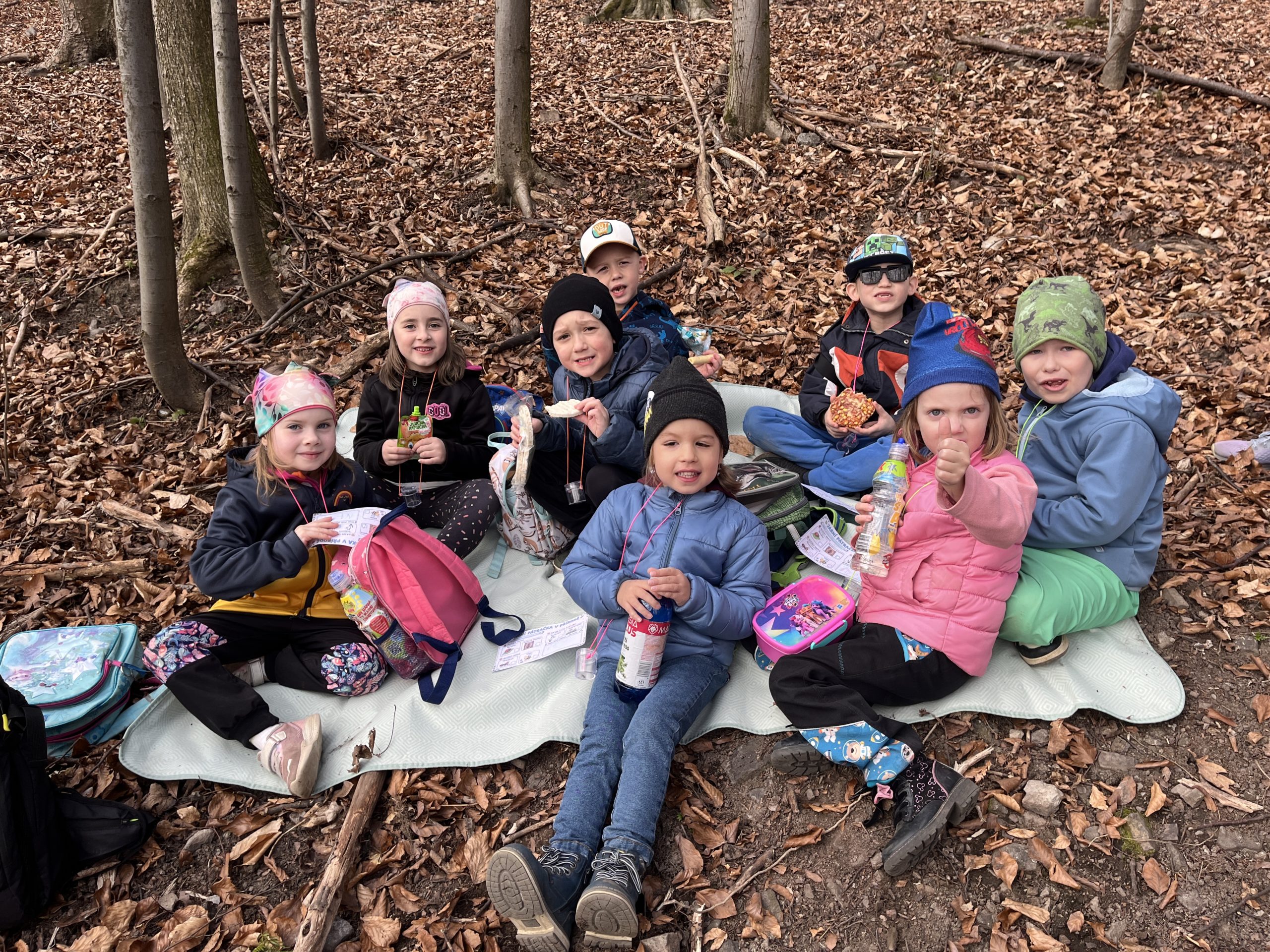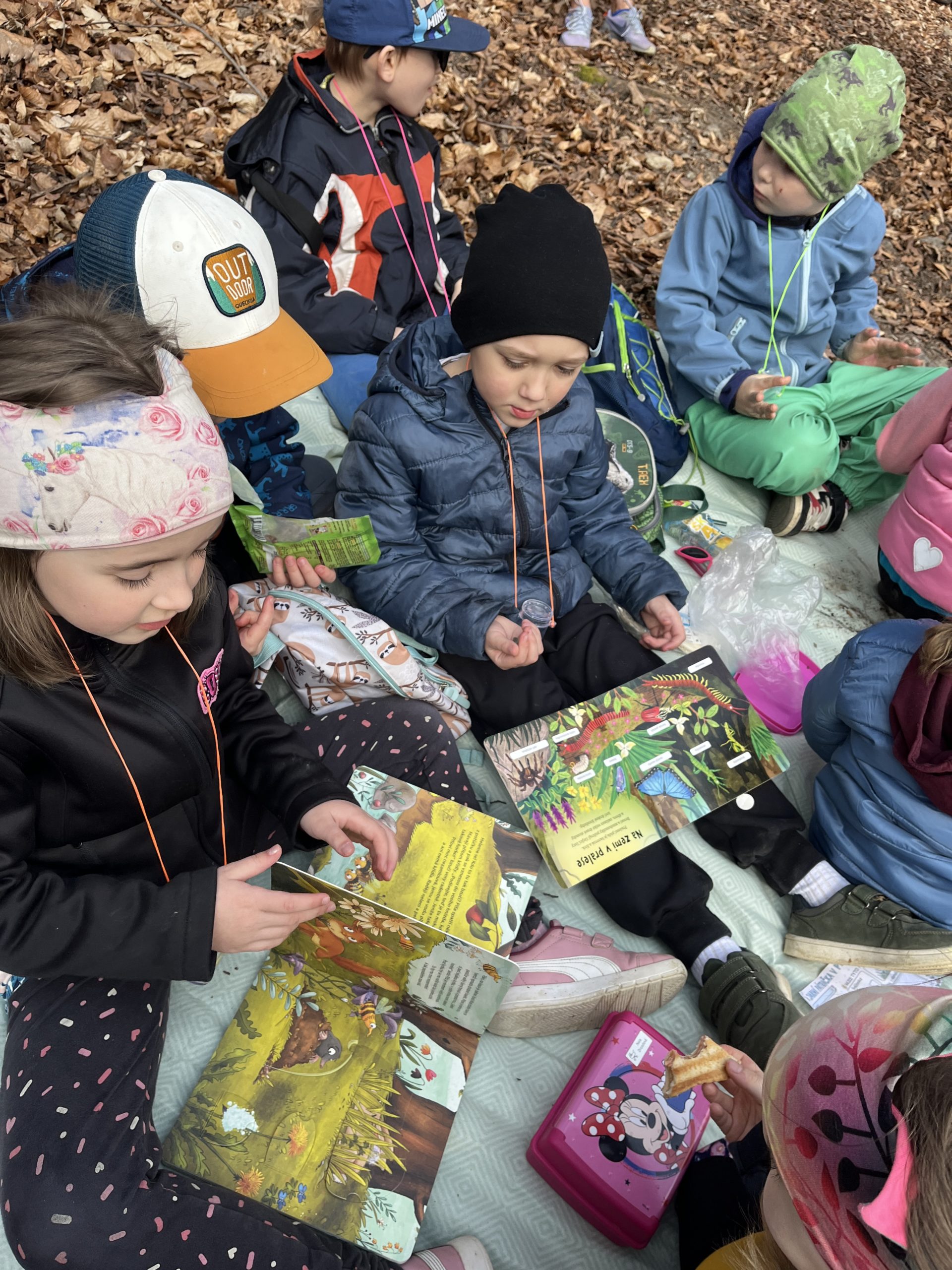 „U krmelce v lese jsme si udělali krátkou zastávku na piknik. Děti si pochutnaly na svačinkách, které si přinesly z domova, a poté si společně prohlížely knihy o lese, ve kterých jsme společně hledali informace o rostlinách a zvířatech, která v lese žijí,“ doplňuje třídní učitelku asistentka pedagoga Kateřina Bučková.
