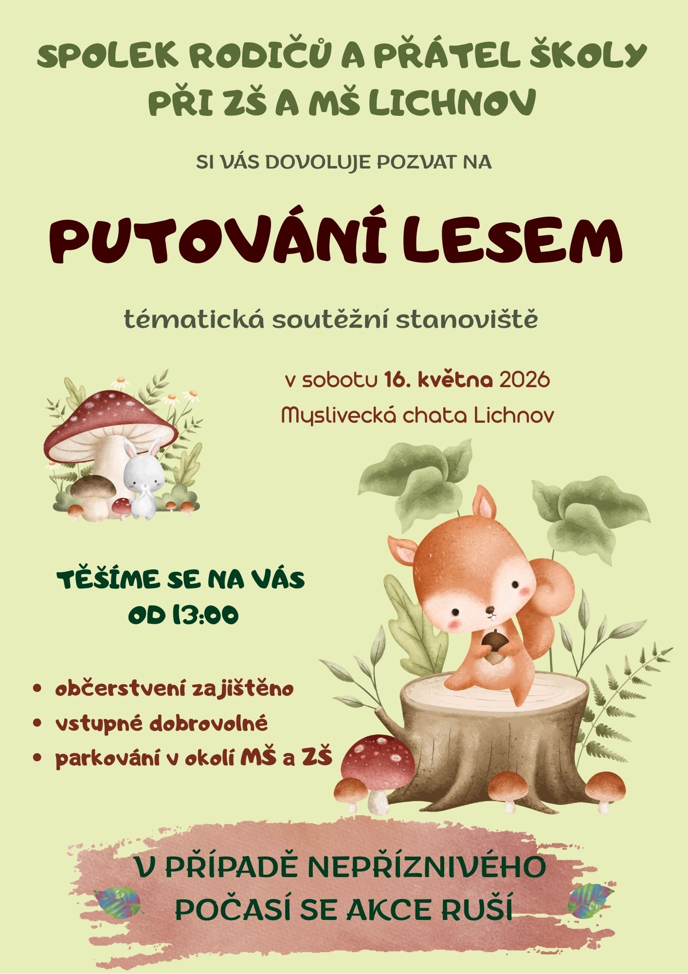Děti, rodiče i veřejnost zveme jménem SRPŠ na Putování lesem