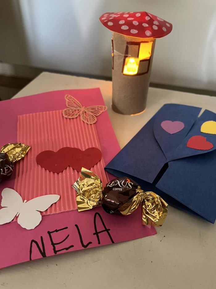 a projev úcty,“ přibližuje družinové tvoření vedoucí vychovatelka Bc. Hana Haroková. „Oddělení Smajlíků pod vedením Ing. Alice Červenkové vytvořilo navíc ještě spoustu krásných papírových kytiček, které budou skvělým doplňkem pro přáníčka z papíru,“ dodává.