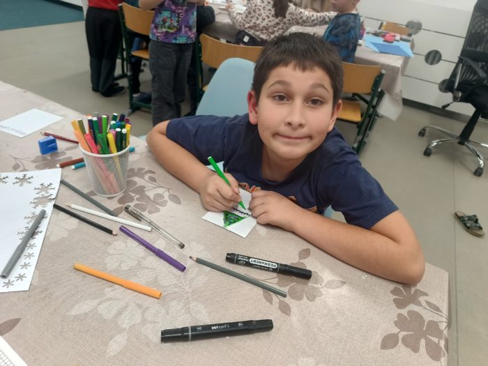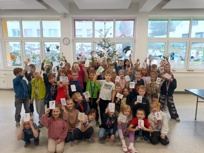 „Děti ze školní družiny vytvořily celkem 144 pohlednic s krásnou vánoční tematikou, které poputují do Domova Korýtko, což je Domov pro seniory a Domov se zvláštním režimem,“ sděluje nám s radostí vedoucí vychovatelka Bc. Hana Haroková.