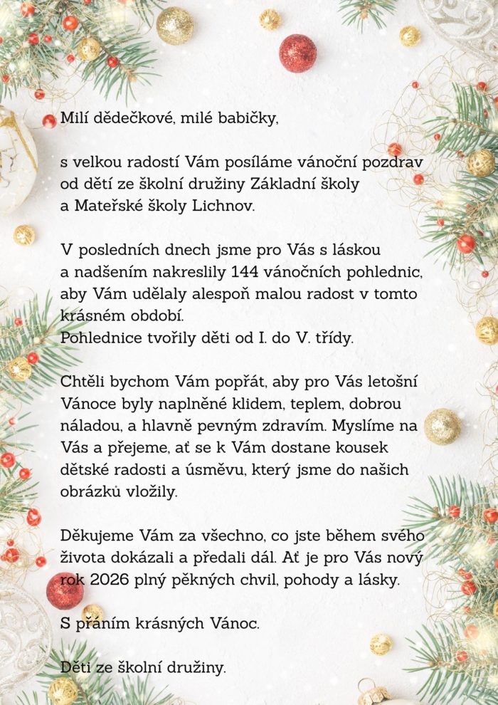 Děti z Lichnova svými 144 vánočními pozdravy ukázaly, že i drobný čin může mít velký dopad. A jak říkají organizátoři projektu – každý úsměv se počítá.