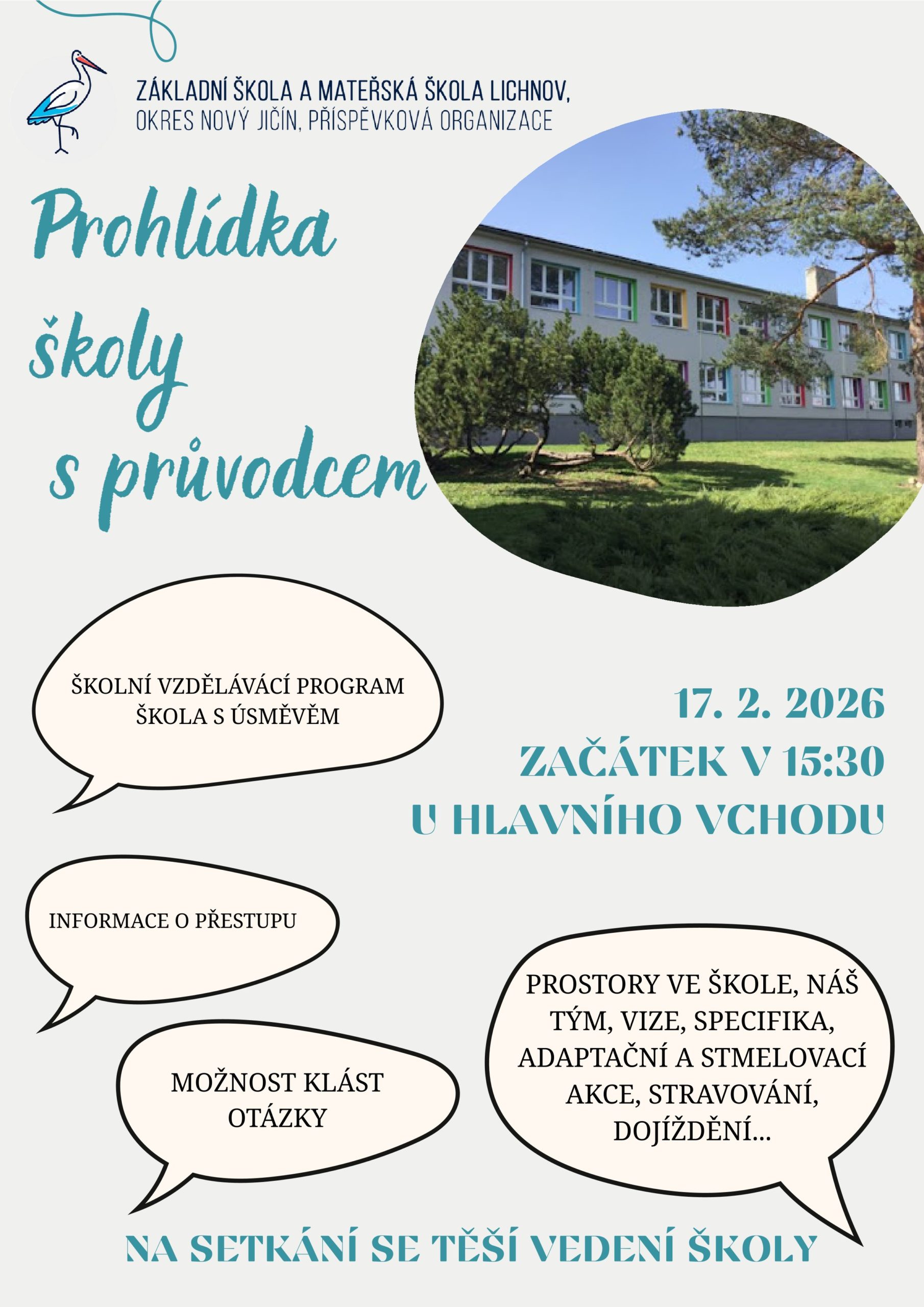 srdečně Vás zveme do naší školy na komentovanou prohlídku s průvodci, která se uskuteční v úterý 17. února 2026.
