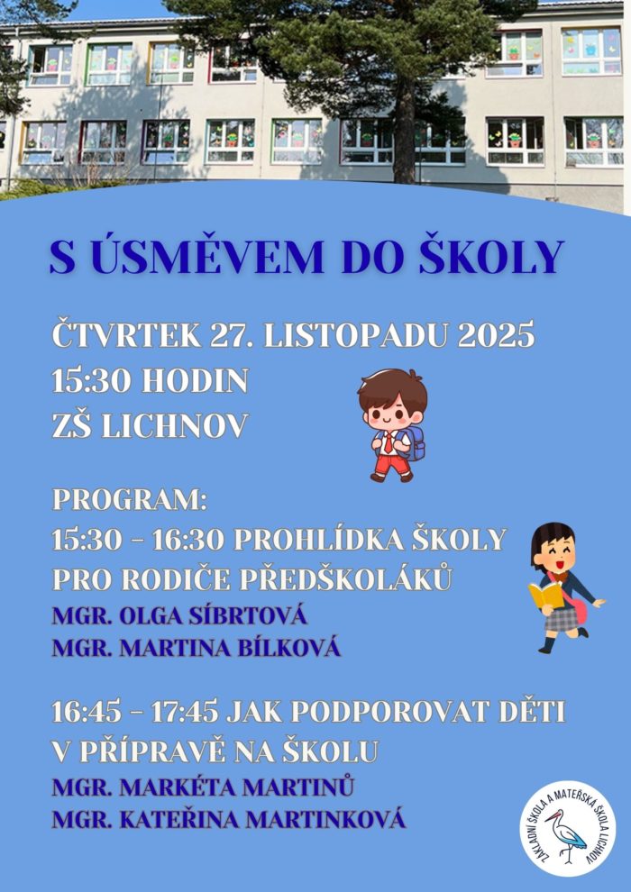 S úsměvem do školy: pozvánka na prohlídku školy a besedu o školní zralosti a připravenosti